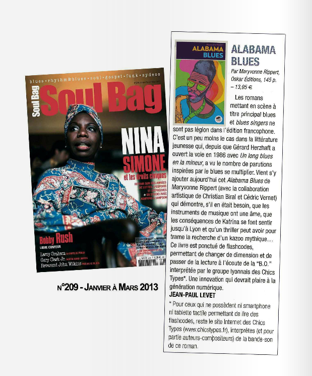 Enfin en 2012, le groupe collabore avec Maryvonne Rippert pour le projet "Alabama Blues". Un livre et un album de musique sont nés de cette amitié en même temps qu'une belle complicité. Alabama blues est le premier livre qui permet l'écoute gratuite et intégrale, avec un smartphone, des chansons qui rythment sa lecture. La bande-son du livre est désormais disponible en édition vinyle 33 tours "Alabama Blues" (Bluesiac / Socadisc).