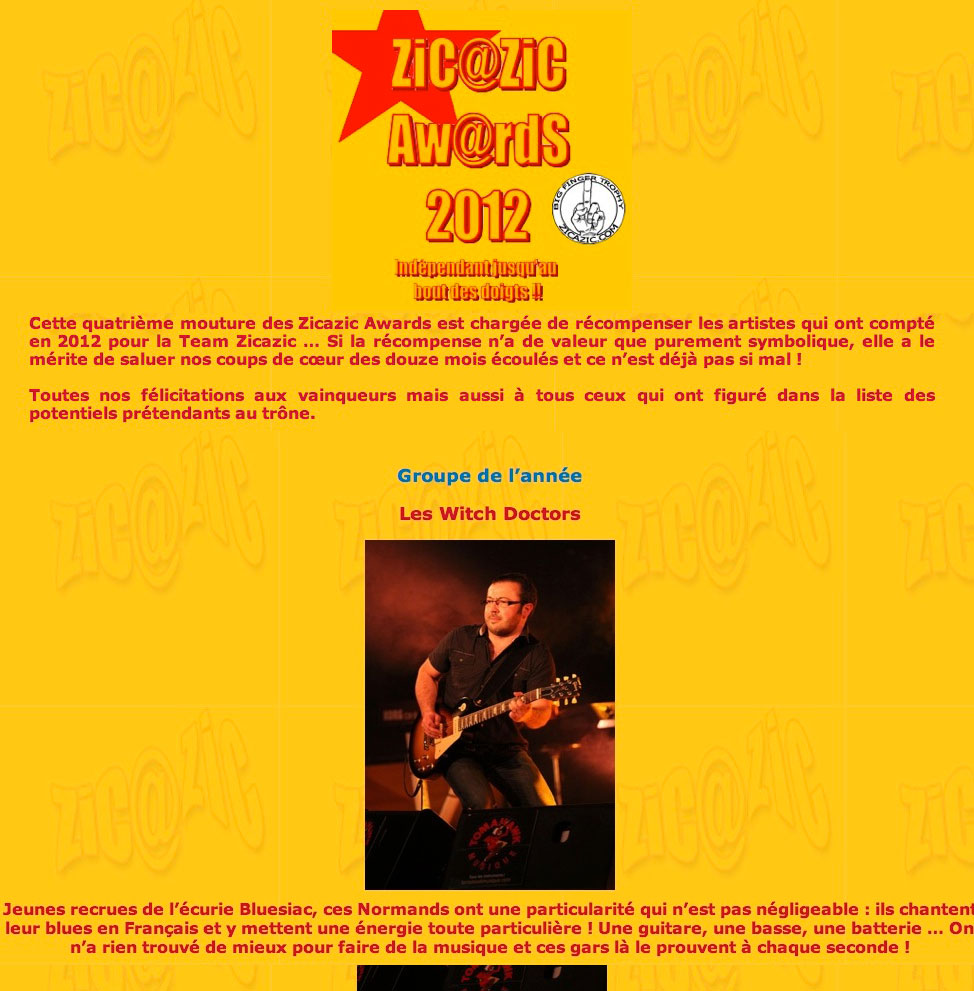 - Groupe de l'année 2012 sur Zicazic en janvier 2013