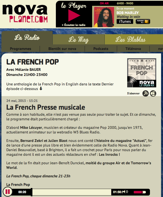 - Interview sur Radio Nova (in english) à propos de mes revues musicales créées dans les années 70.