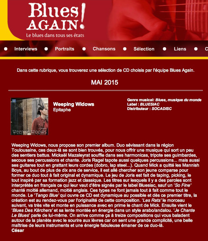 - Chronique du CD sur Blues Again! (mai 2015)