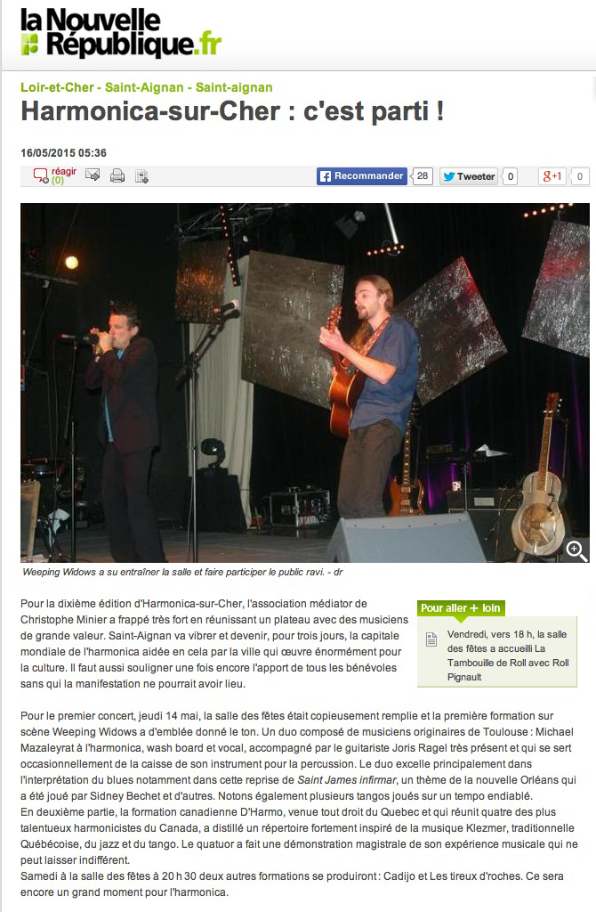 - Article dans La Nouvelle République (mai 2015)