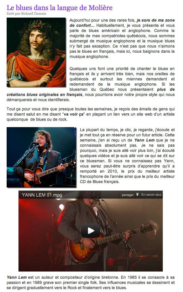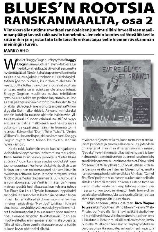- Le magazine finlandais (!) Blues News parle de Yann Lem dans un article consacré aux artiste français de blues.