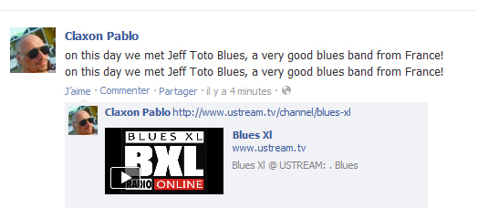 • JEFF TOTO BLUES : Mercredi 30/01, la radio BLUES XL (Argentine) a passé 6 titres du CD de Jeff !!, Jeudi 31/01, concert "Afterwork" à la Coopérative de Mai de Clermont-ferrand vers 18h30.